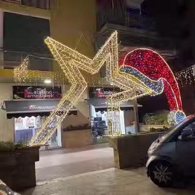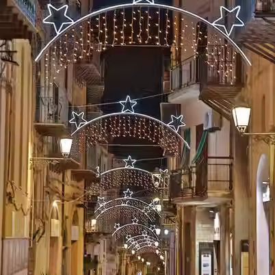 Dal 1970 illuminiamo città, borghi e spazi commerciali con scenografie uniche. In questa sezione trovi alcuni dei nostri progetti più significativi, suddivisi per tipologia: dalle luminarie per negozi agli attraversamenti luminosi, fino alle strutture scenografiche di grande impatto.